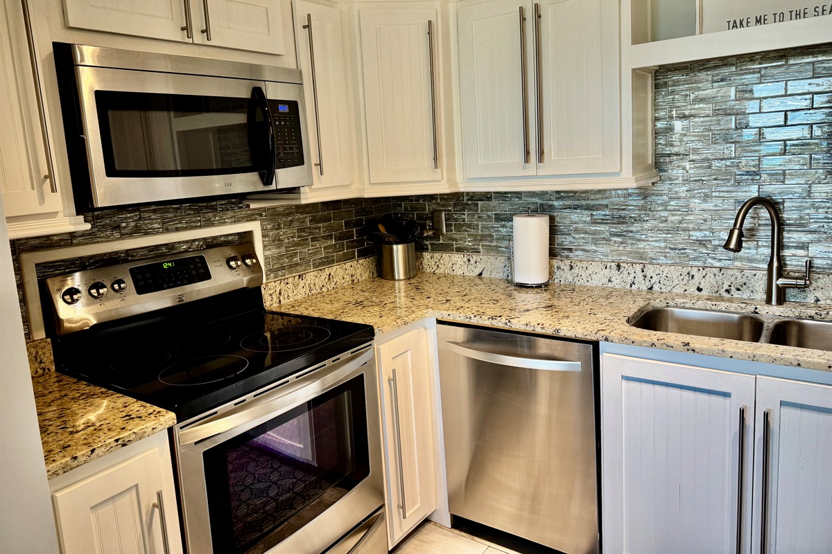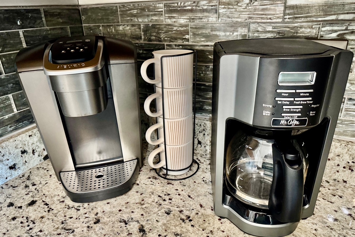 KITCHEN: Fully equipped, stainless steel appliances, Keurig and standard coffee maker, toaster, full knife set