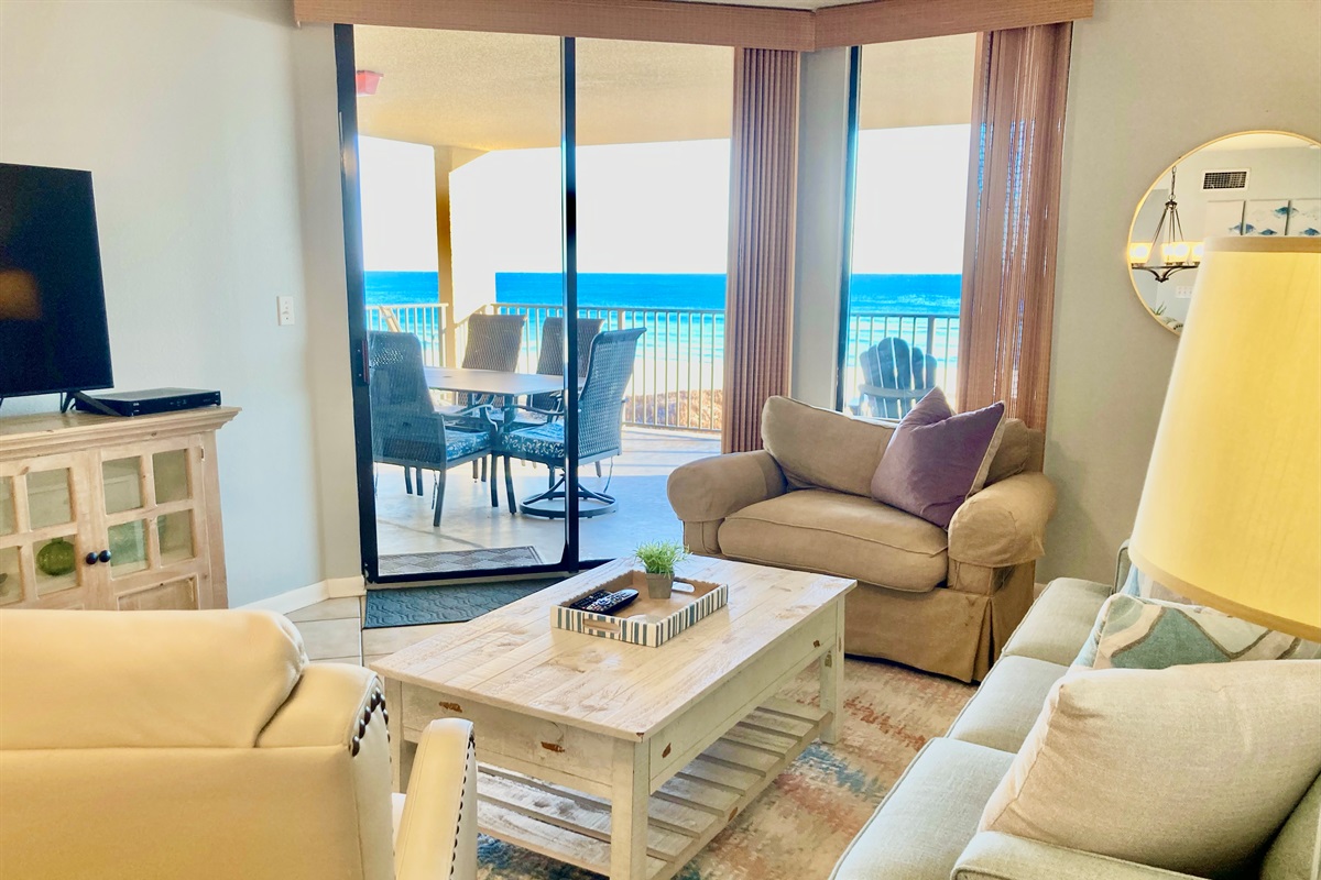 2 Bedrooms • 2 Bathrooms 2 Baths • Sleeps 3-6Phoenix 5 Unit #206...This beautifully decorated 2BR/2BA beachfront condo has beautiful views of the beach from a huge balcony! This condo has everything you'll need for a pleasurable and enjoyable vacation including Free Wi-Fi! You'll love the beautiful views from both the living room and master bedroom! Both the master and living rooms have sliding glass door entrances to your gulf front balcony, equipped with a patio table and chairs. And, the living room has a queen sofa sleeper as well if you need it!