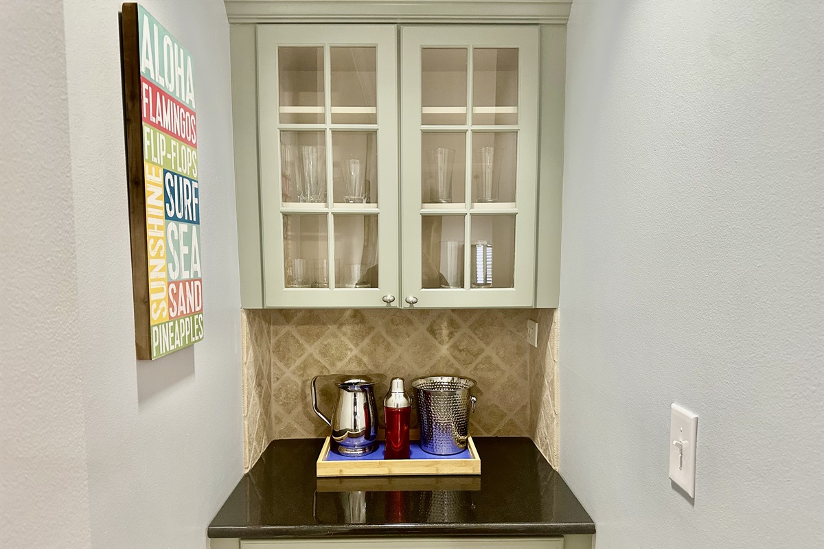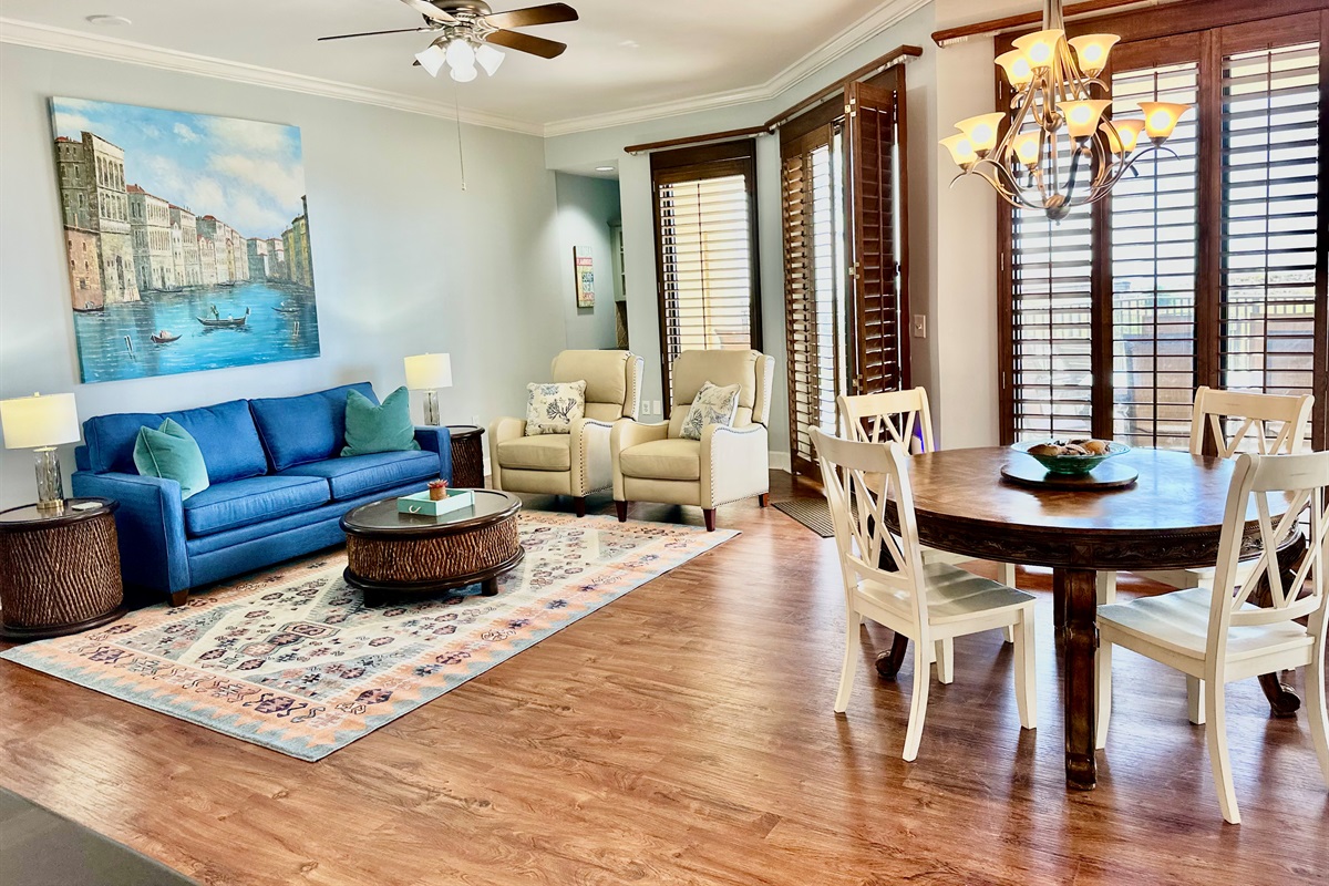 You'll love the gourmet kitchen with a huge Viking fridge, Viking stove and gorgeous Travertine floors. There's a wine fridge too! And, we provide a standard coffee maker AND a Keurig! The over-sized living room has vaulted ceilings, queen sofa bed, flat screen television and a wet bar. And, this is a corner unit, so you have ocean views coming from all of the gorgeous plantation shutters! And, from the living room, you are steps away from a huge balcony that overlooks the pool area as well as the beach. You can watch your children swim at the pool from your balcony...how convenient! And, you have your own private entrance to the pool area!