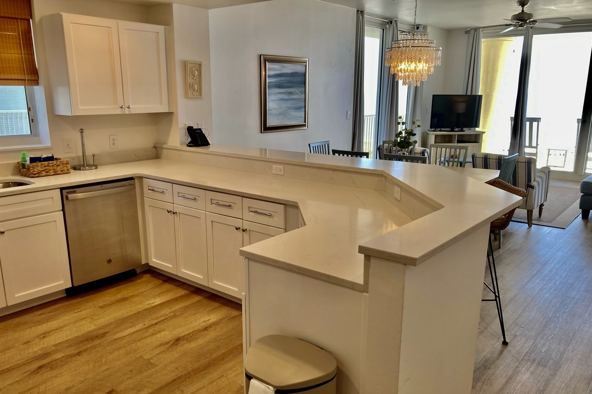 The LIVING ROOM has floor-to-ceiling windows to maximize the gulf views. It is beautifully decorated with comfortable seating, HD tv, and a queen sofa sleeper. The fully stocked KITCHEN has stainless steel appliances and offers a standard coffee maker and a Keurig! There is a pantry and stackable washer and dryer in the kitchen area as well. The MASTER BEDROOM has a king bed, HD tv and an entrance to the gulf front balcony. The large master bath has a walk-in shower and double vanity. BEDROOM 2 has a queen bed, HD tv and a small north facing balcony, and BEDROOM 3 has a full + twin bunk bed and a HD tv. Both guest bedrooms have adjoining bathrooms with a tub/shower combo. In addition to those three bathrooms, there is an additional half bath near the entrance of the condo for guests to use!